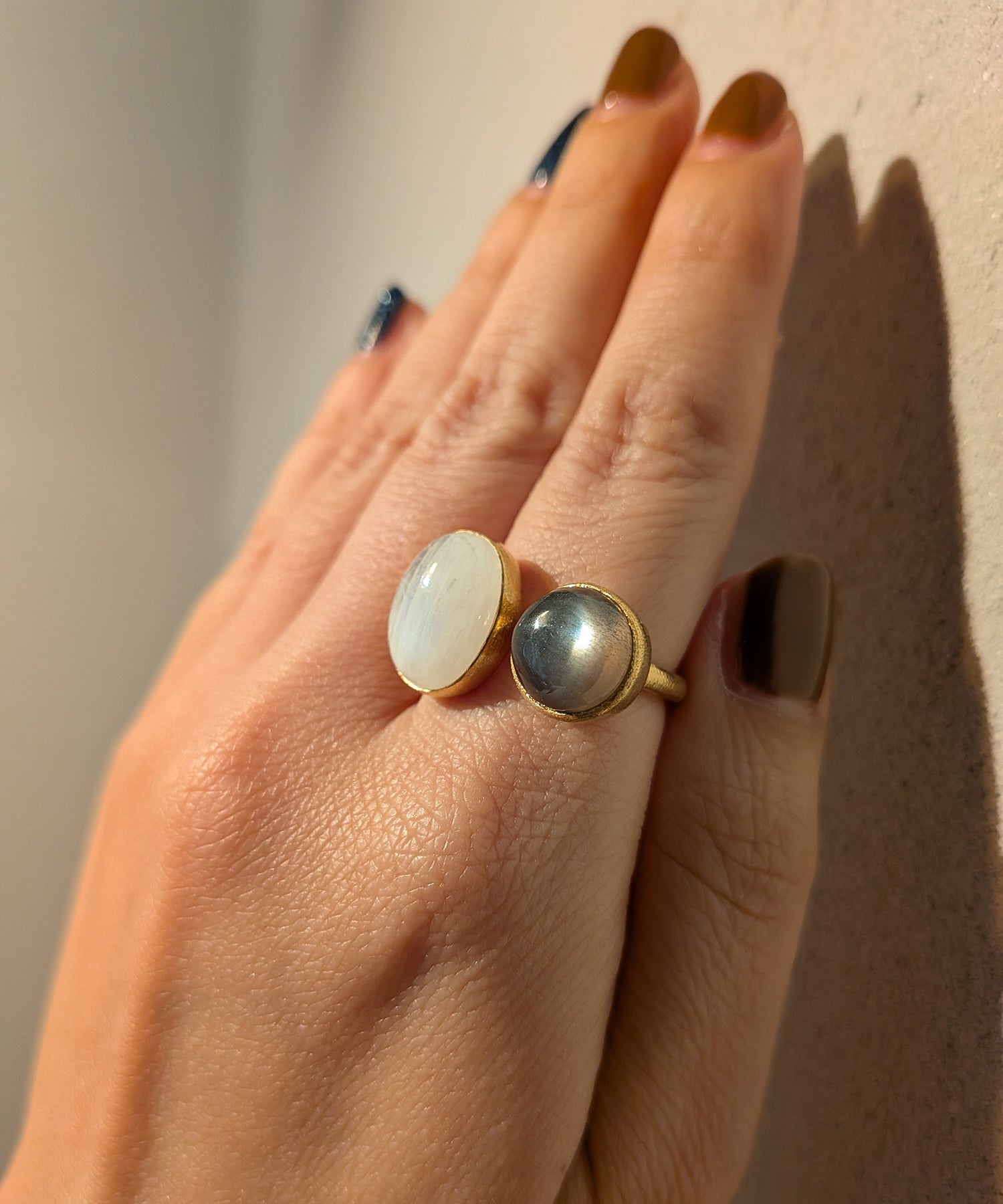 グレームーンストーン & レインボームーンストーン ギメルリング