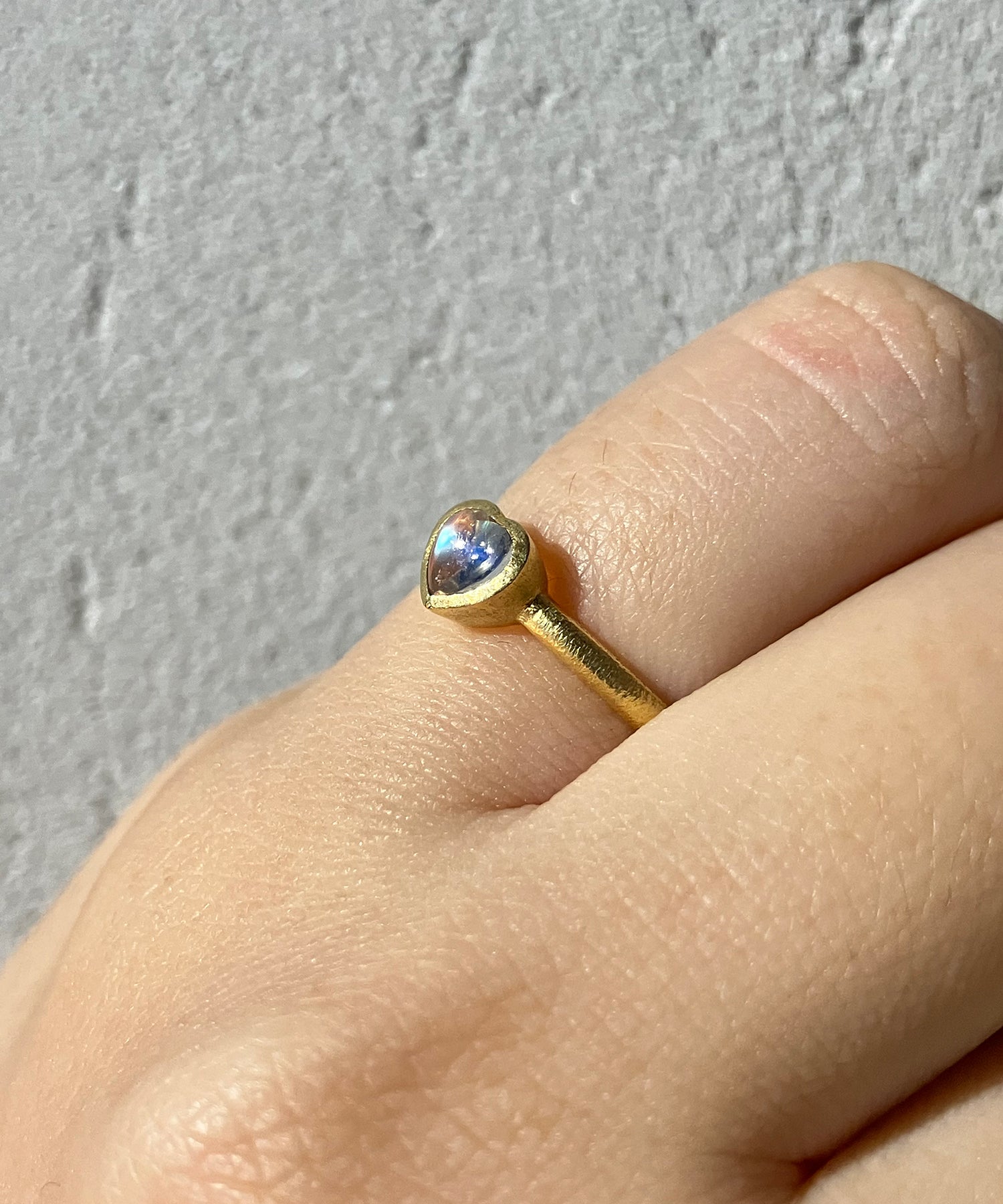 石の透明度が高く神秘的な「ロイヤルブルームーンストーン」。時折見せる青い光が美しく、上品に肌に馴染みます。
